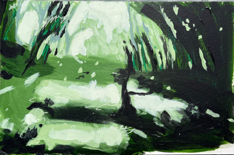These paintings show my struggle between tight control and letting go. I'm still finding the balance between detail and freedom, and that search has become important to me.